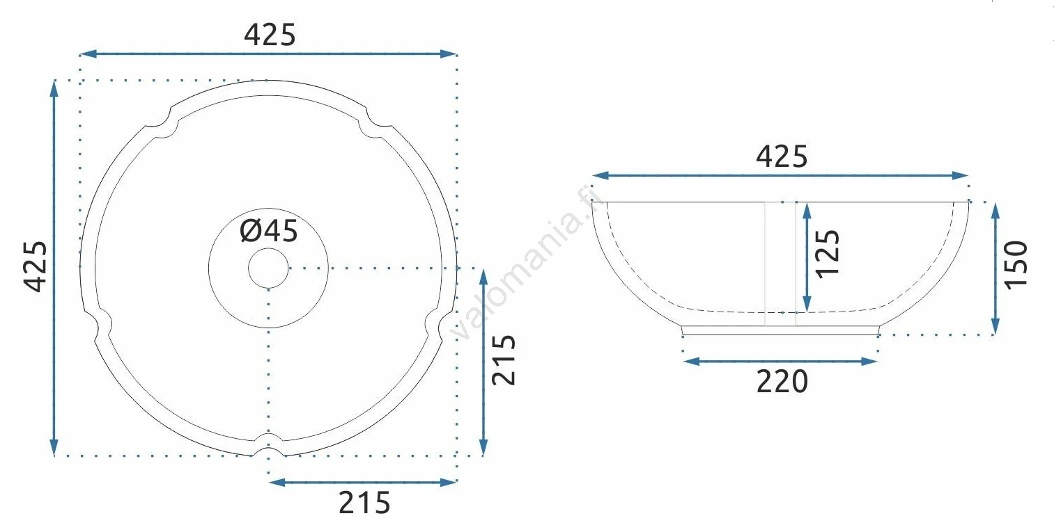 • REA-U5666 - VIVIEN tasoon asennettava pesuallas, halkaisija 42,5 cm, keramiikka/ornamenttikuvio