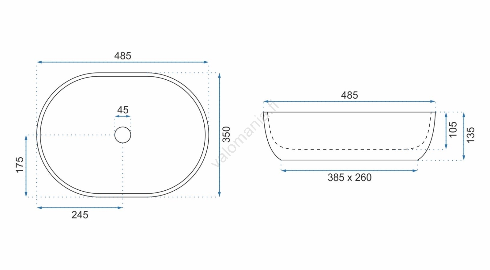 • Moderni ja tyylikäs pesuallas ilman ylivuotoa.