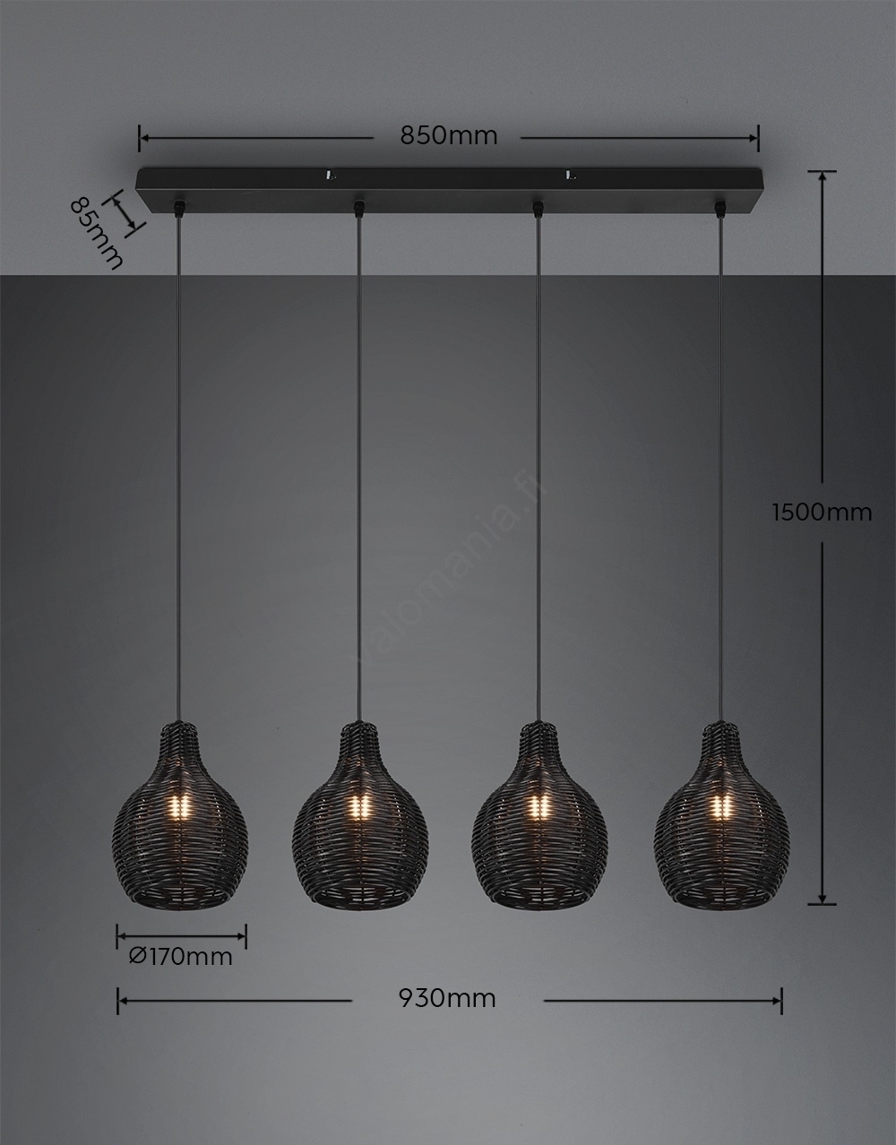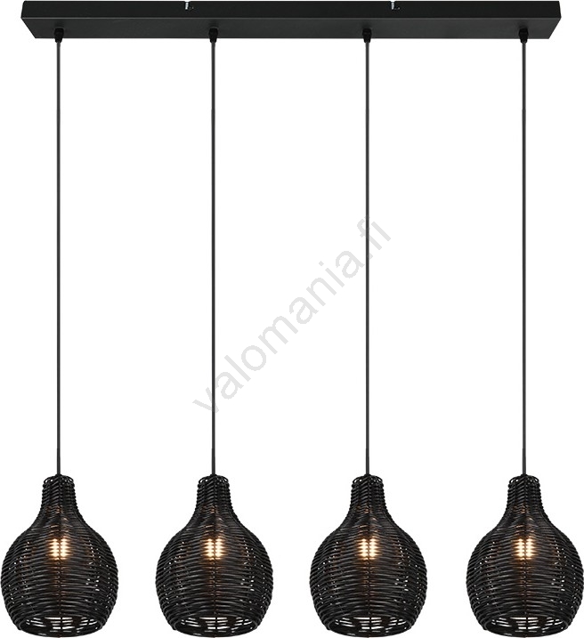 Reality - Riippuvalaisin johdolla SPROUT 4xE14/30W/230V, musta/rottinki merkitsee kaunista ja toimivaa muotoilua.  Valoon sopii polttimo, jossa on E14-kanta. Täältä voit ostaa myös muita lamppuja edulliseen hintaan. Mielenkiintoinen lisä kotiisi.