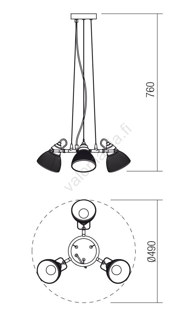 Redo 01-1450 - Kattokruunu johdossa RIDGE 3xE27/60W/230V | Valomania