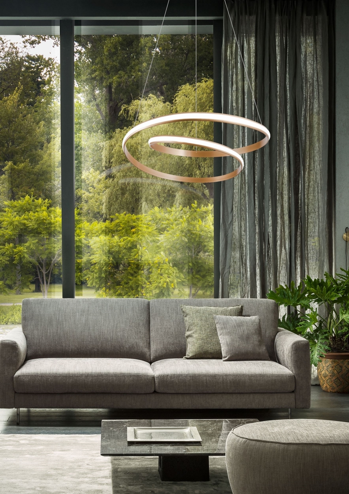 Redo 01-1889 - himmennettävä LED-riippuvalaisin vaijerilla TORSION LED/29W/230V Ø 55 cm pronssinväri