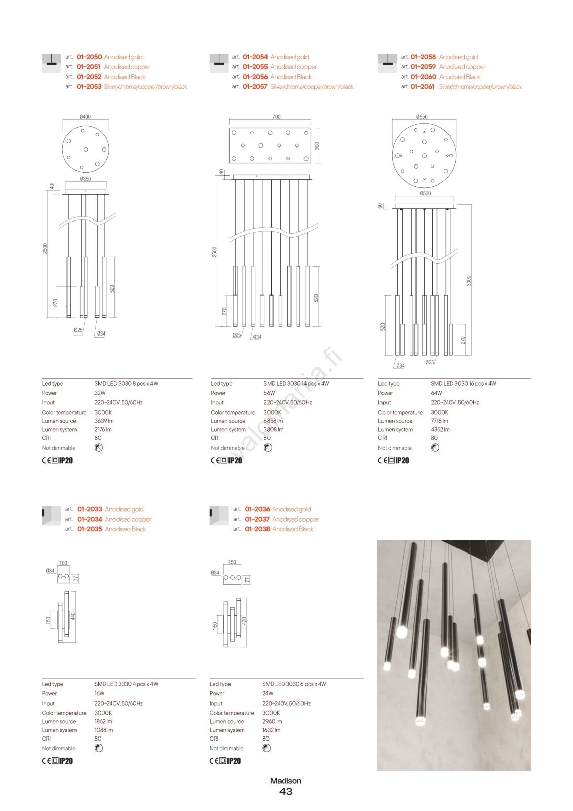 • Redo 01-2034 - LED-seinävalaisin MADISON 4xLED/4W/230V kupari
