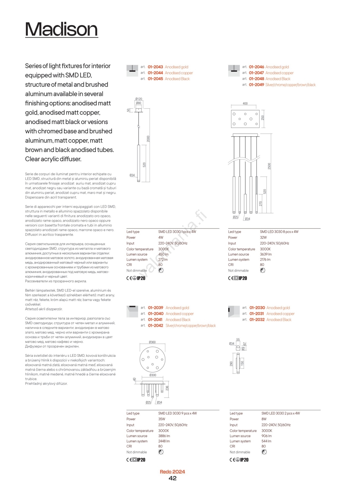 Redo 01-2040 - LED-kattovalaisin MADISON 9xLED/4W/230V kupari | Valomania