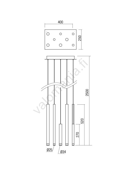 • Redo 01-2047 - LED-kattokruunu johdossa MADISON 8xLED/4W/230V kupari
