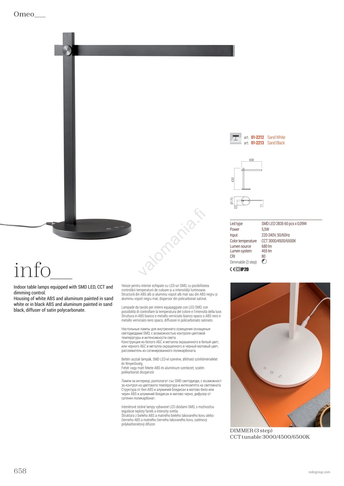 Redo 01-2212 - Himmennettävä LED-pöytävalaisin OMEO LED/5,5W/230V 3000/4500/6500K valkoinen | Valoma