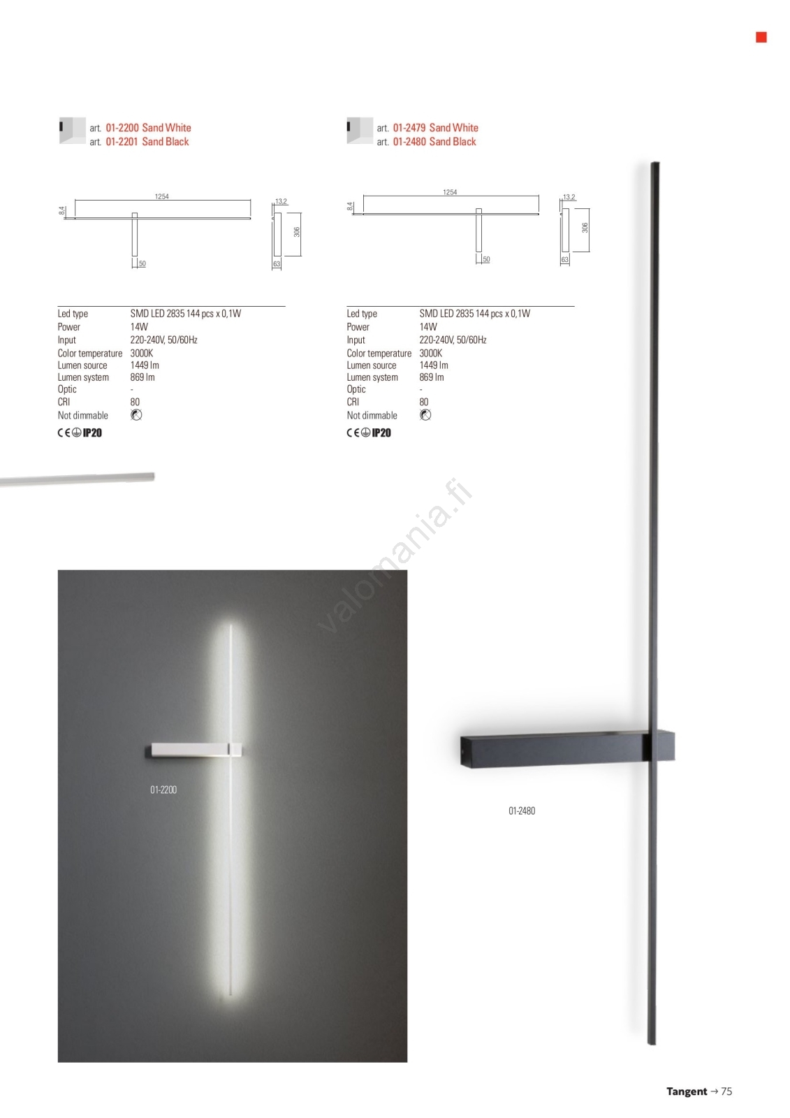 Redo 01-2479 - LED-seinävalaisin TANGENT LED/14W/230V 3000K valkoinen | Valomania