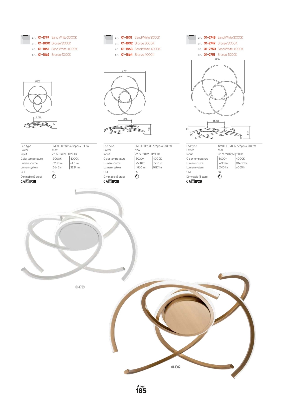 Redo 01-2748 - Himmennettävä LED-kattovalaisin ALIEN LED/75W/230V 3000K halkaisija 90 cm valkoinen