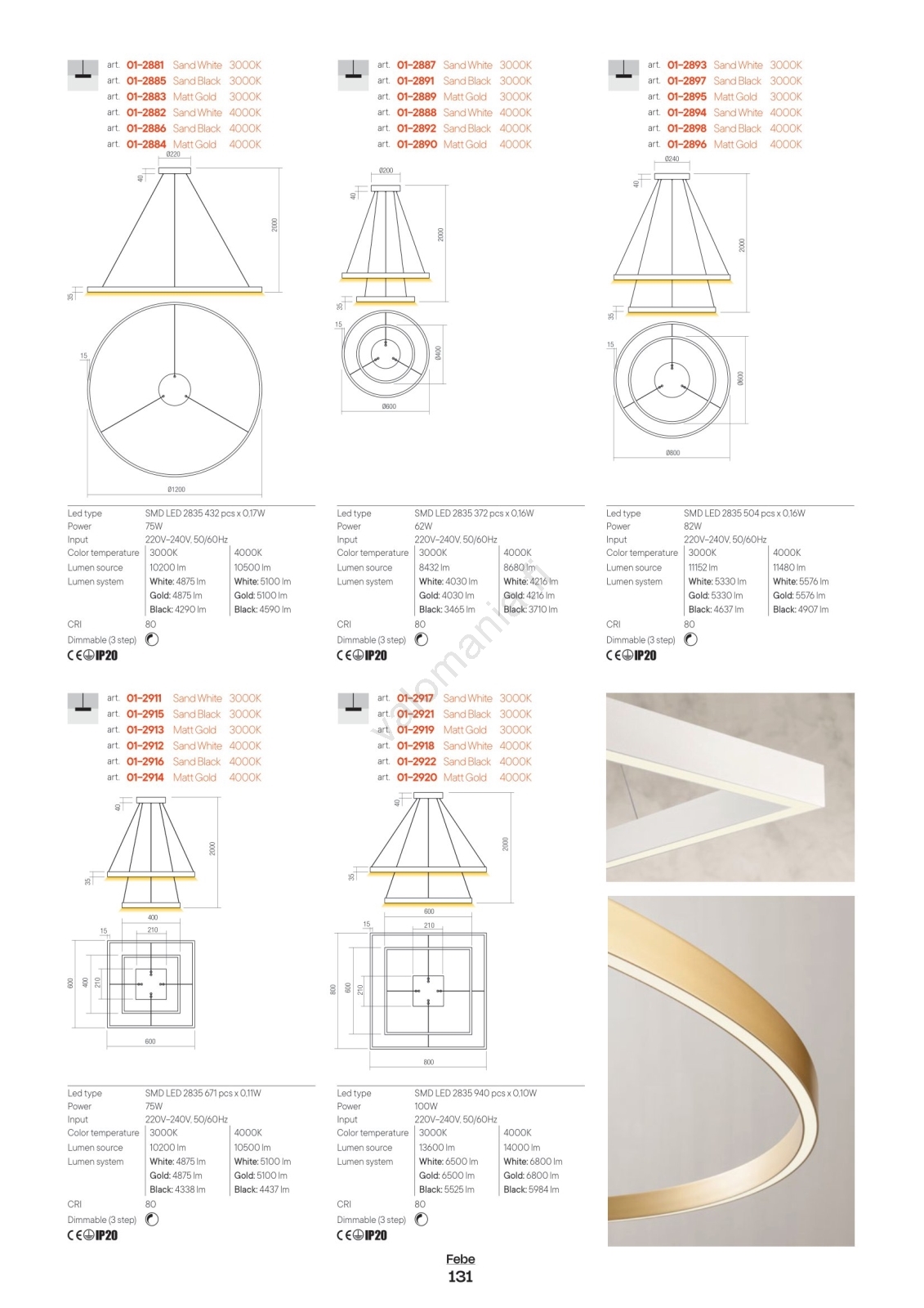 Redo 01-2889 - Himmennettävä LED-kattokruunu johdossa FEBE LED/62W/230V kulta | Valomania