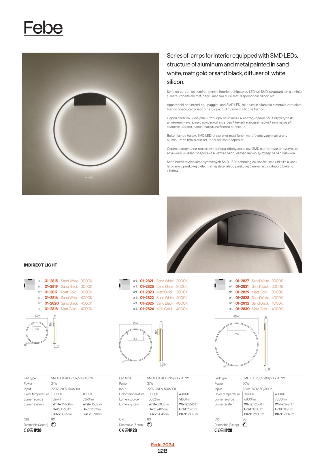 • Redo 01-2889 - Himmennettävä LED-kattokruunu johdossa FEBE LED/62W/230V kulta