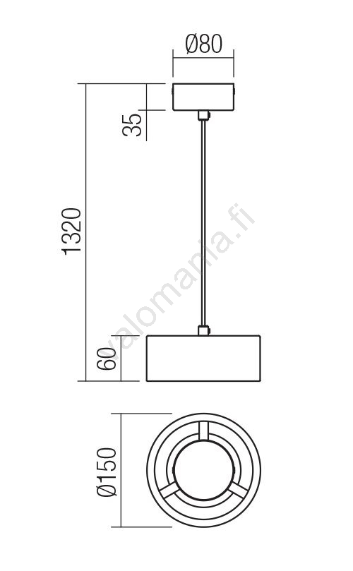 Redo 01-3101 - LED-kattokruunu johdossa PUNKT LED/6W/230V musta | Valomania