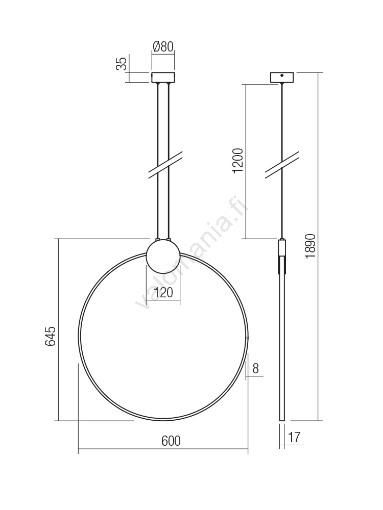 Redo 01-3107 - LED-kattokruunu johdossa ATOM LED/20W/230V halkaisija 60 cm | Valomania