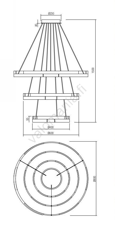• Redo 01-3182 - Himmennettävä LED-kattokruunu johdossa CASTLE LED/80W/230V musta
