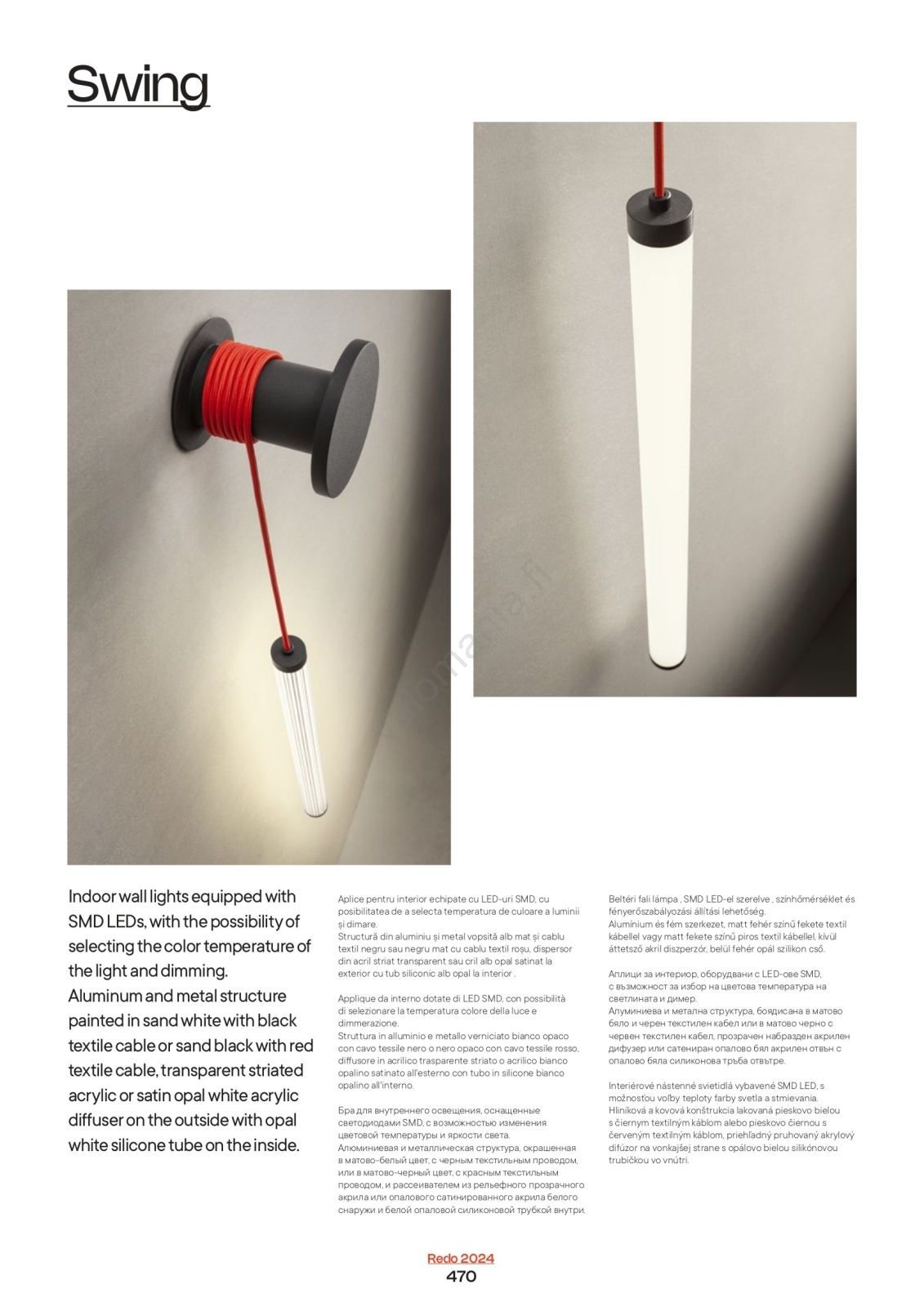 • Redo 01-3303 - LED himmennettävä seinälamppu SWING LED/16W/230V 3000/4000K CRI 90 valkoinen