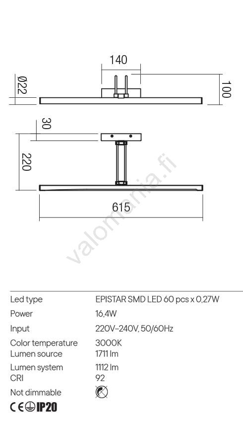 • Redo 01-3470 - LED-kuvavalo IKON LED/16,4W/230V 61,5 cm CRI 92 valkoinen