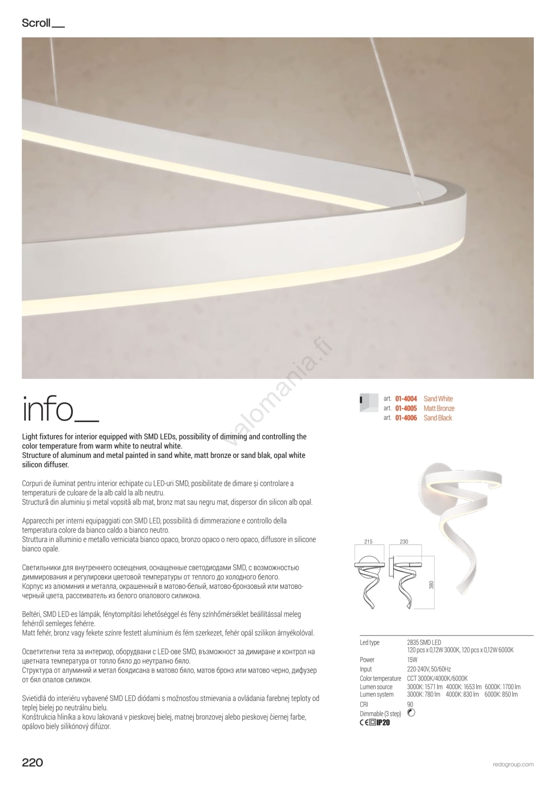 • Redo 01-4013 - Himmennettävä LED-riippuvalaisin vaijerilla SCROLL LED/38W/230V 3000K/4000K/6000K CRI 90 halkaisija 60 cm valkoinen