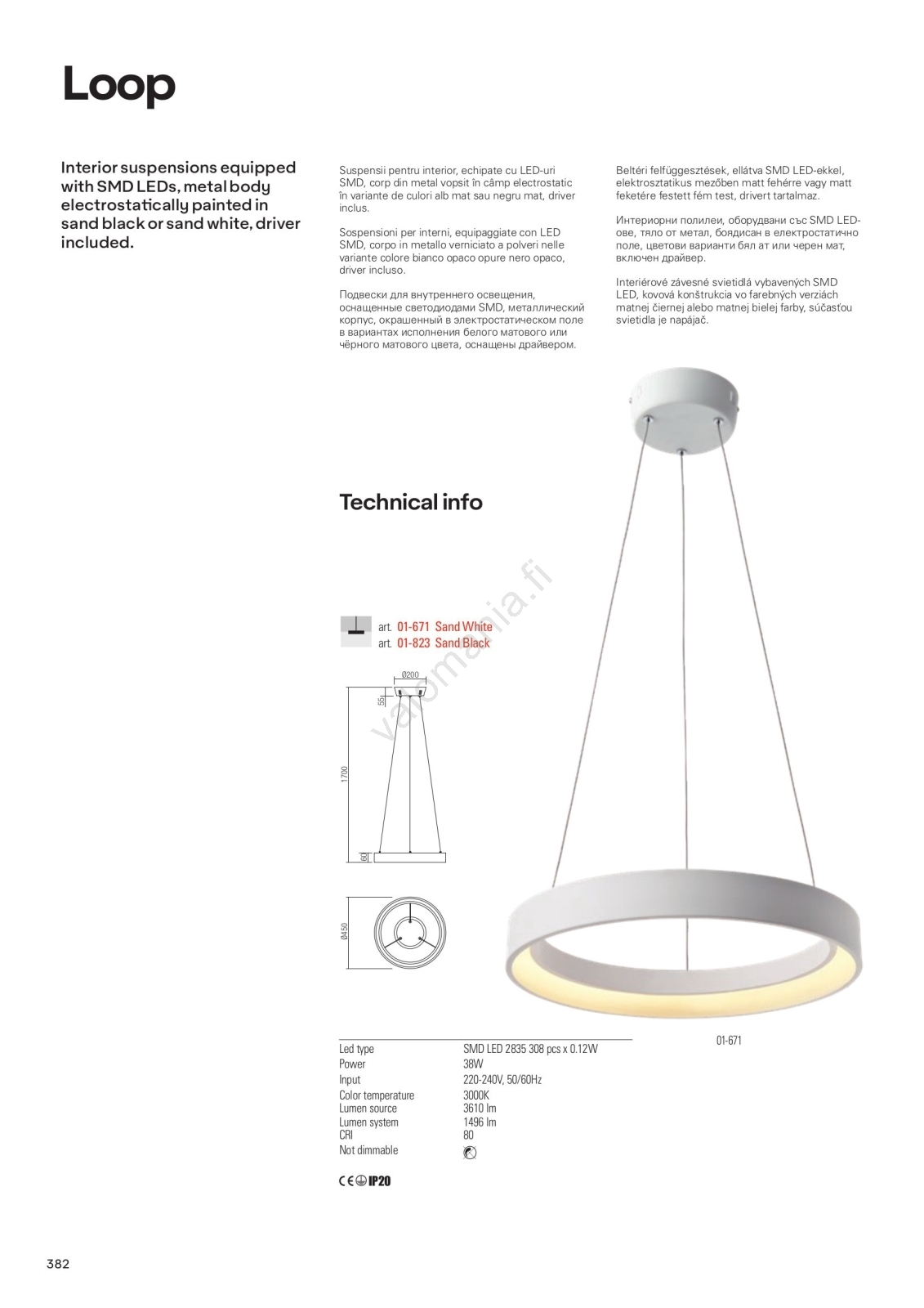 Redo 01-671 - LED-kattokruunu johdossa LOOP LED/38W/230V halkaisija 45 cm valkoinen | Valomania