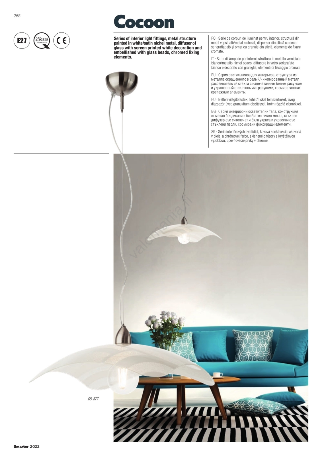 Redo 05-877 - COCOON-riippuvalaisin johdolla 1xE27/42W/230V kermanvärinen