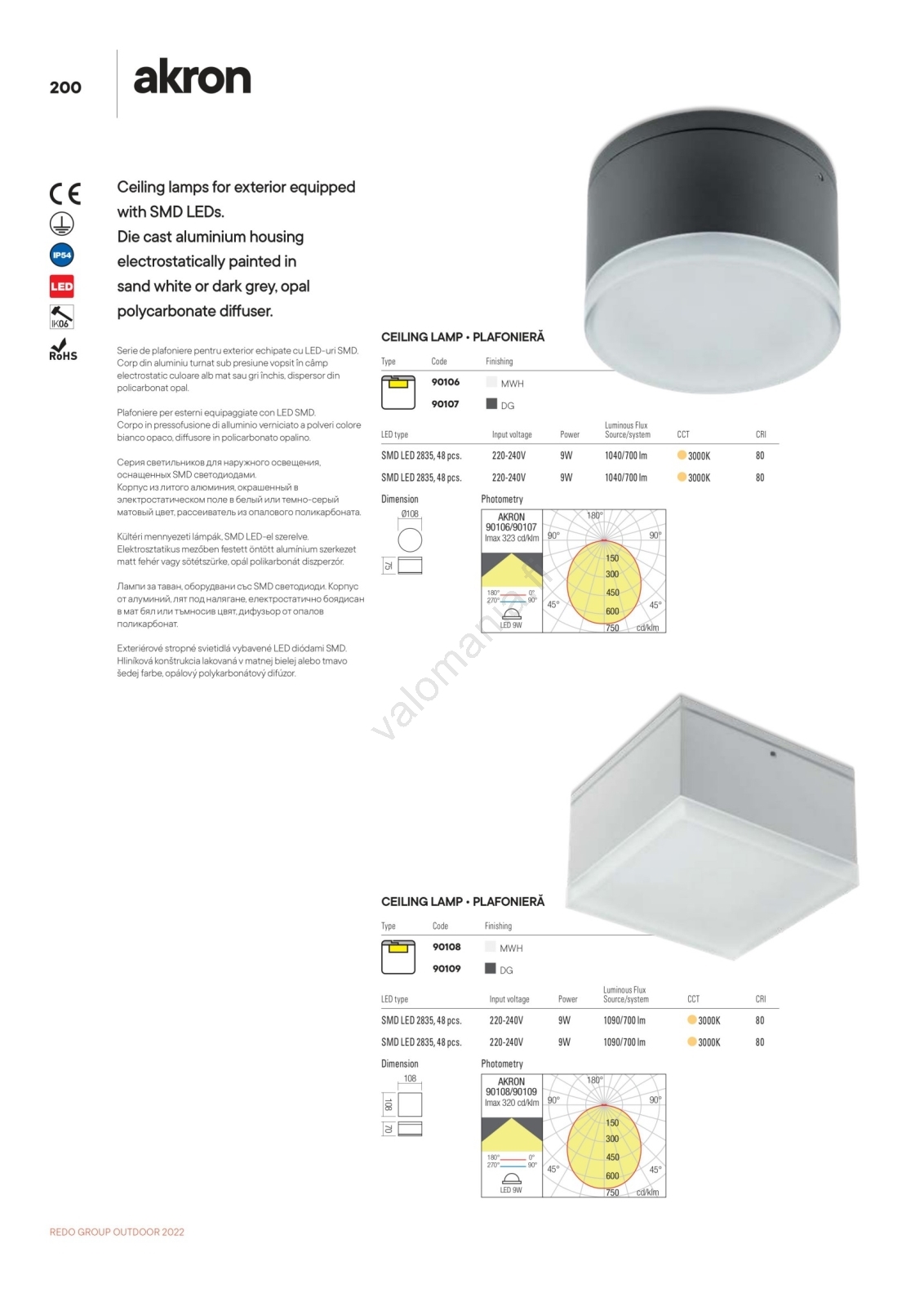Redo 90107 - LED-ulkokattovalaisin AKRON LED/9W/230V IP54 | Valomania