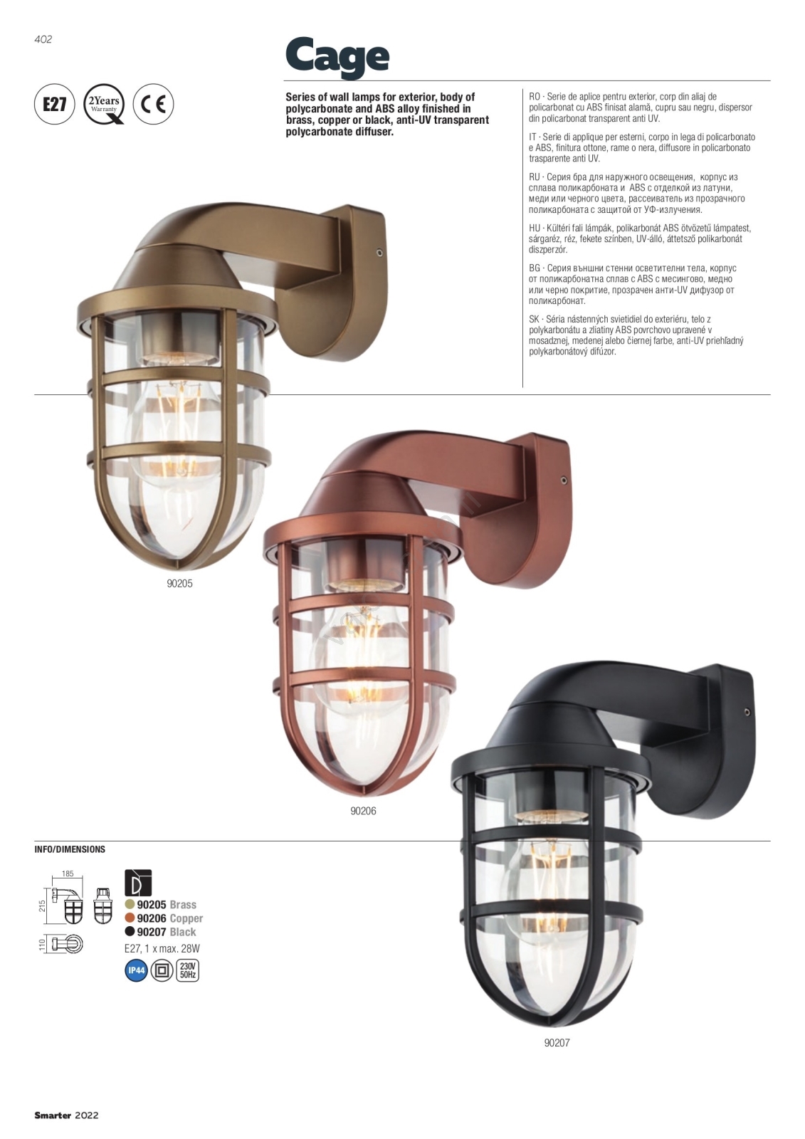 • Redo 90206 - Ulkoseinävalaisin CAGE 1xE27/28W/230V IP44 kupari