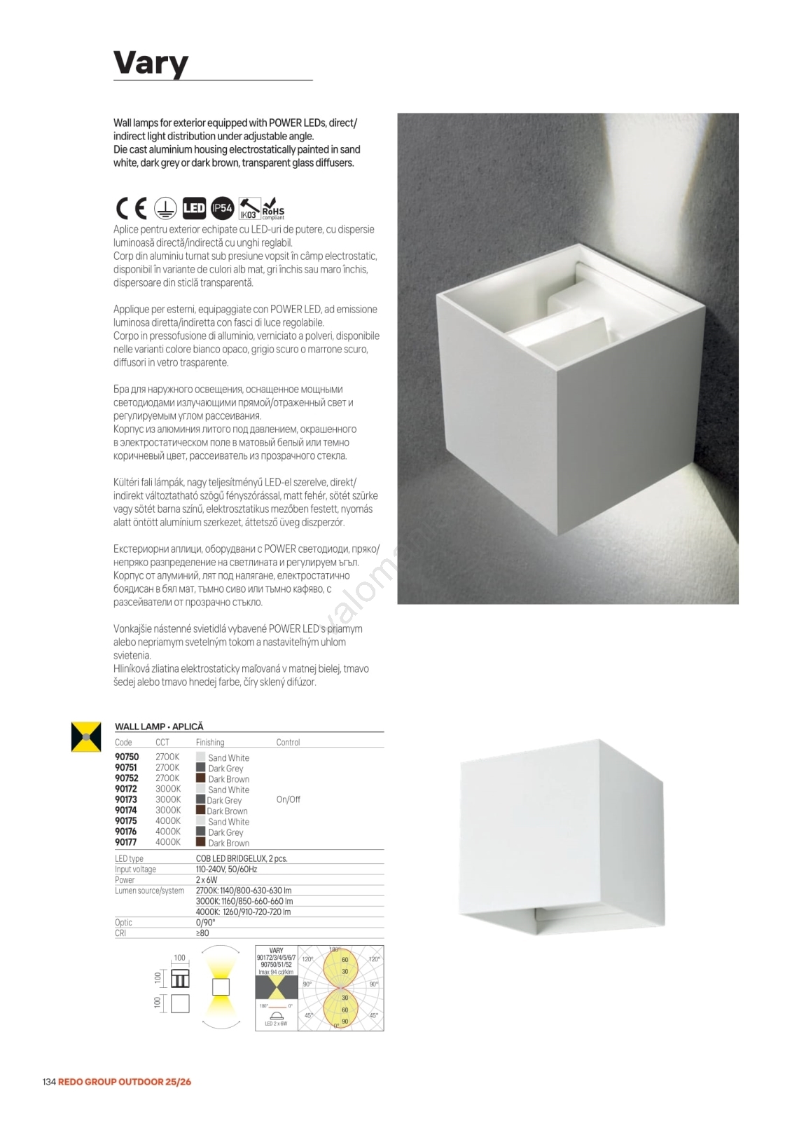 • Redo 90300 - LED-ulkoseinävalaisin VARY 4xLED/5W/230V 3000K IP54 valkoinen