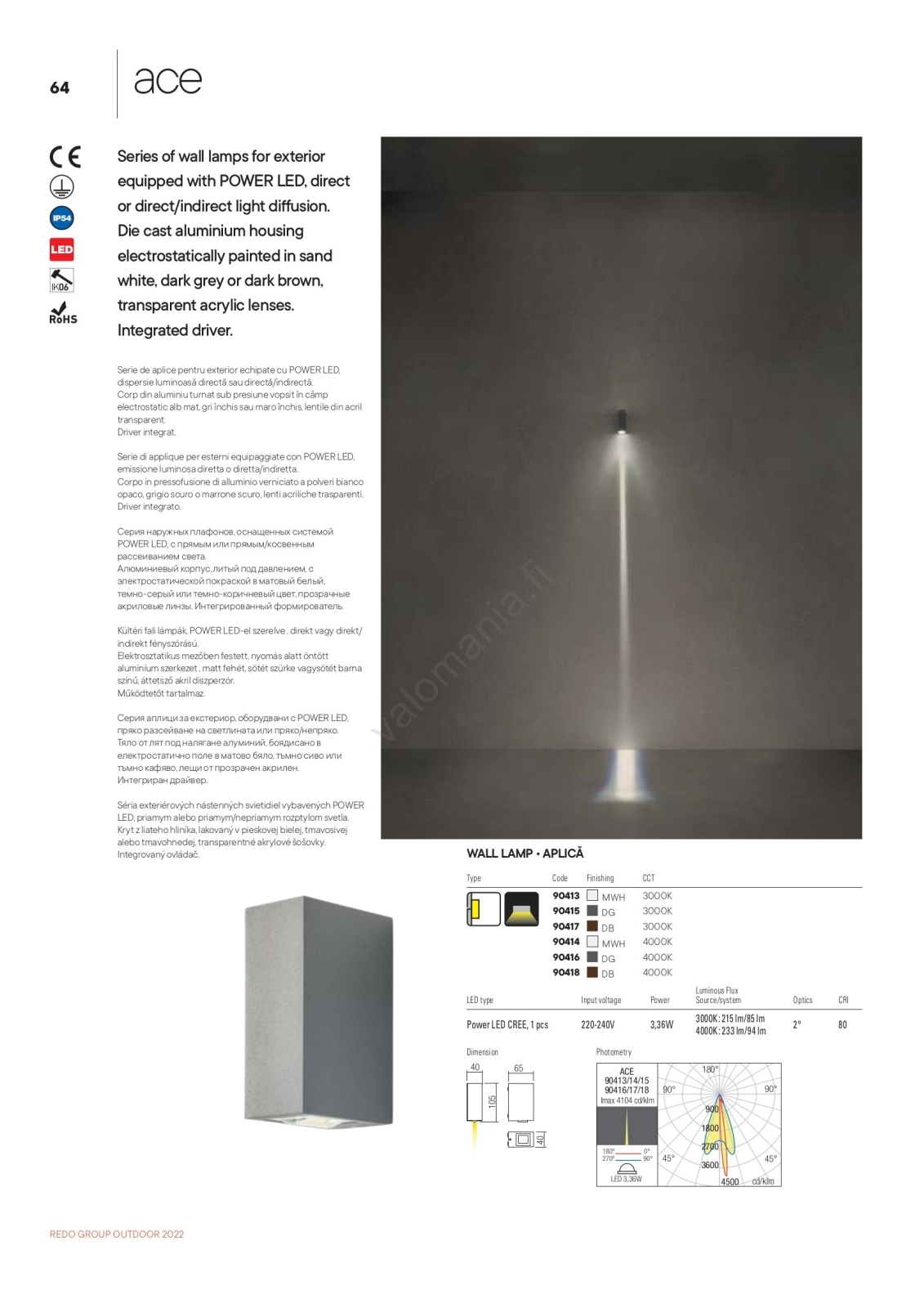 • Redo 90413 - LED Ulkoseinävalaisin ACE LED/3,36W/230V 3000K IP54 valkoinen