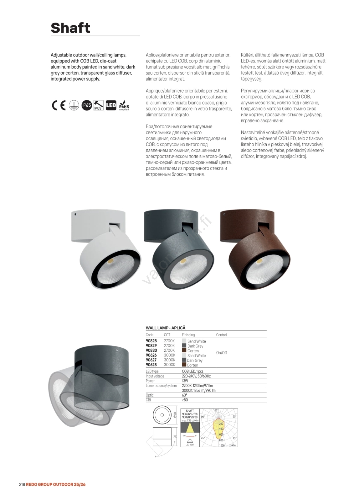 • Redo 90626 - SHAFT LED ulkokohdevalaisin 13W/230V 3000K Ø 9 cm IP65, valkoinen