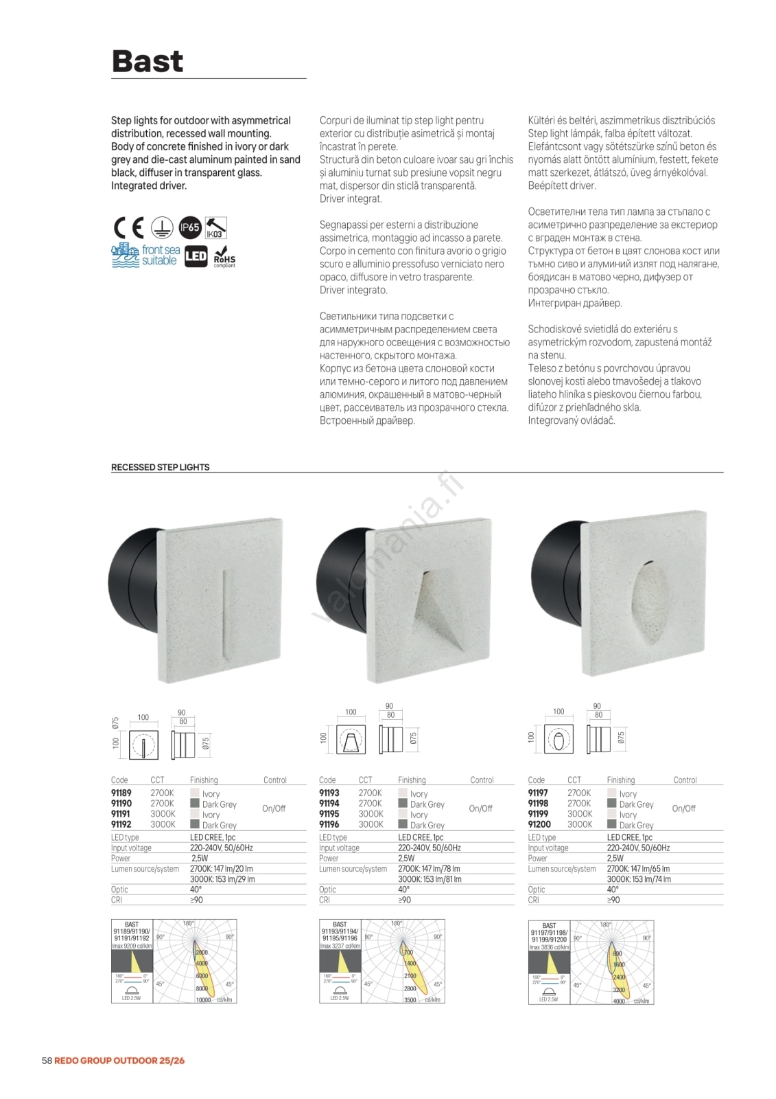 • Redo 91199 - LED-ulko-opastusvalaisin BAST LED/2,5W/230V 3000K CRI 90 IP65 harmaa