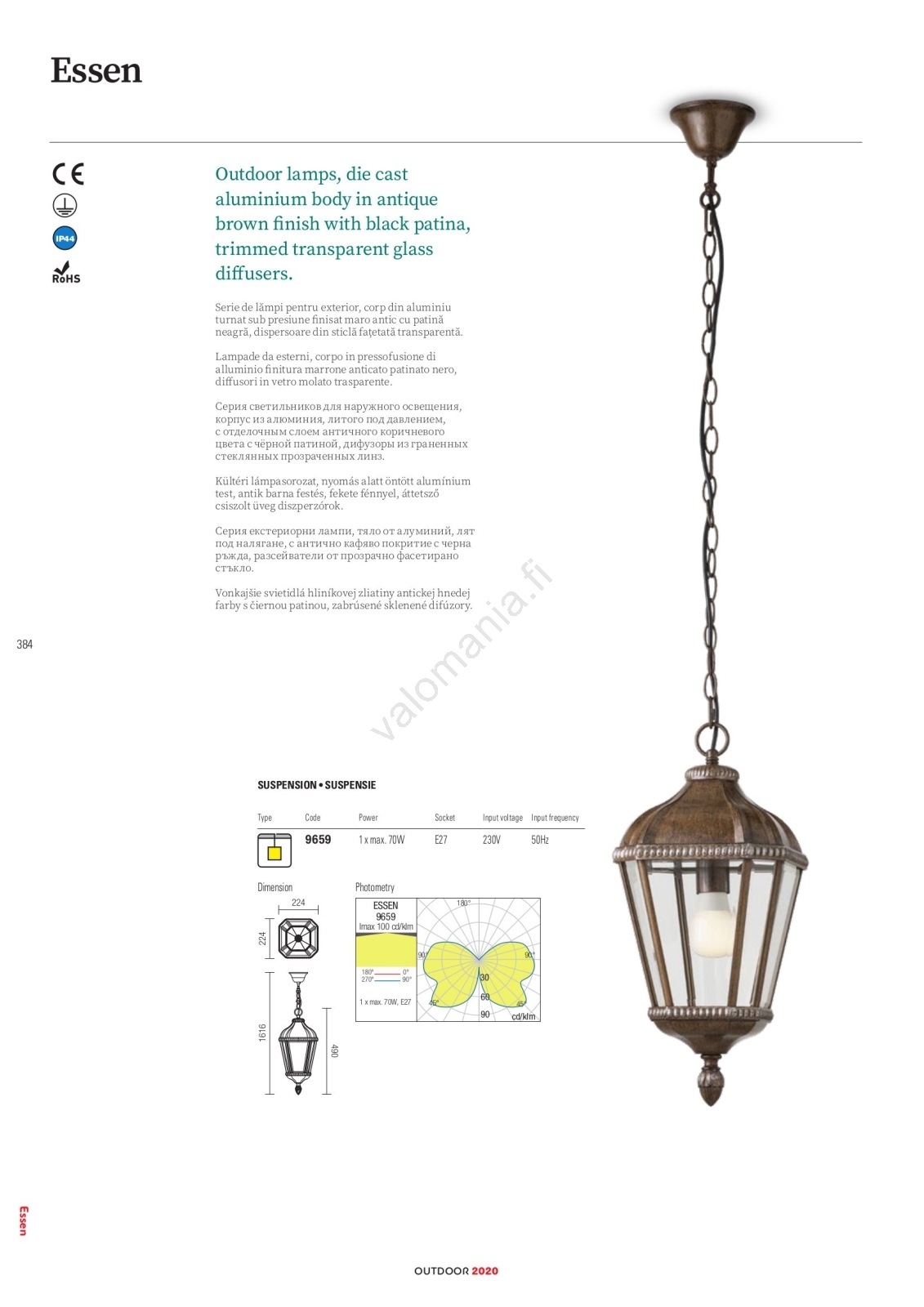 Redo 9662 - Ulkovalaisin ESSEN 1xE27/70W/230V 221,5 cm IP44 ruskea/patina merkitsee kaunista ja toimivaa muotoilua.  Valoon sopii polttimo, jossa on E27-kanta. Täältä voit ostaa myös muita lamppuja edulliseen hintaan. Mielenkiintoinen lisä kotiisi.