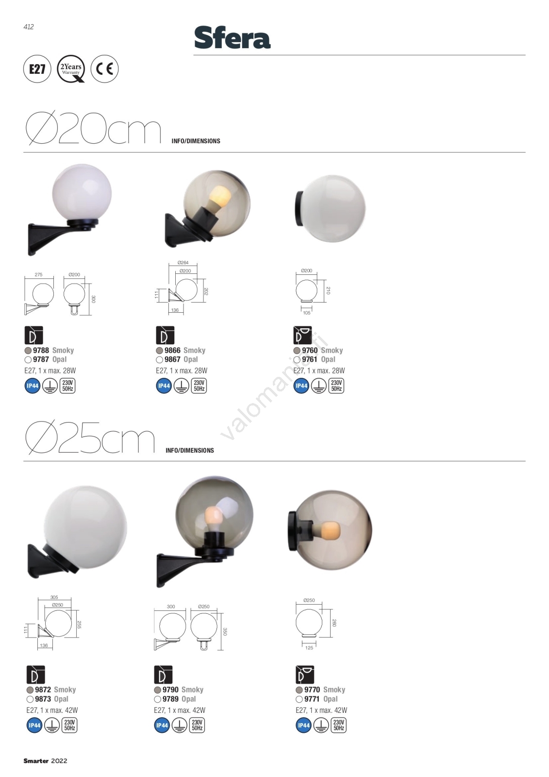 Redo 9789 - Ulkoseinävalaisin SFERA 1xE27/42W/230V IP44 valkoinen | Valomania