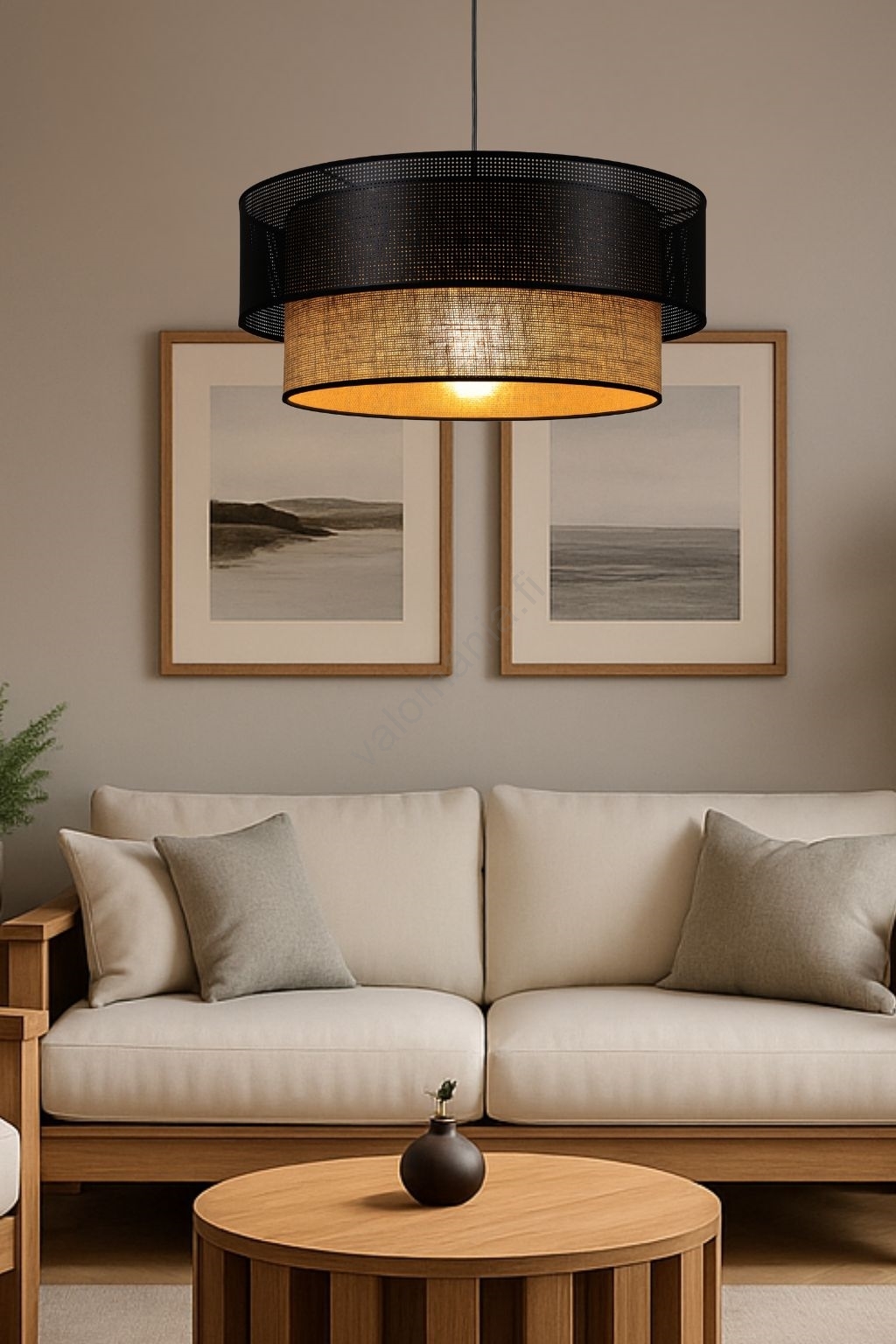 • Riippuvalaisin vaijerilla BORHO 1xE27/60W/230V, halkaisija 50 cm, musta/juutti