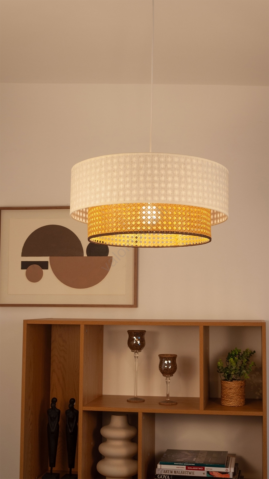 • Riippuvalaisin vaijerilla NATIA 1xE27/60W/230V halkaisija 45 cm valkoinen/ruskea
