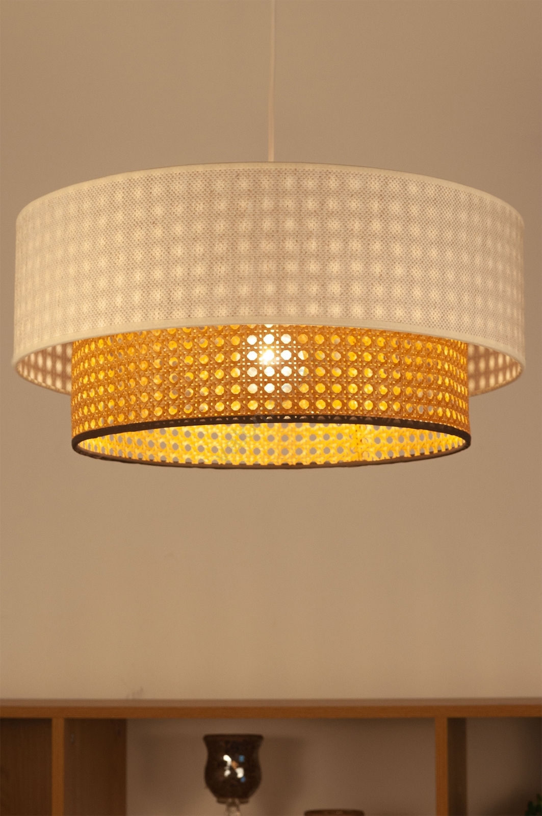 • NATIA-riippuvalaisin, kaapelikiinnitys, 1xE27/60W/230V, Ø45 cm, kerma