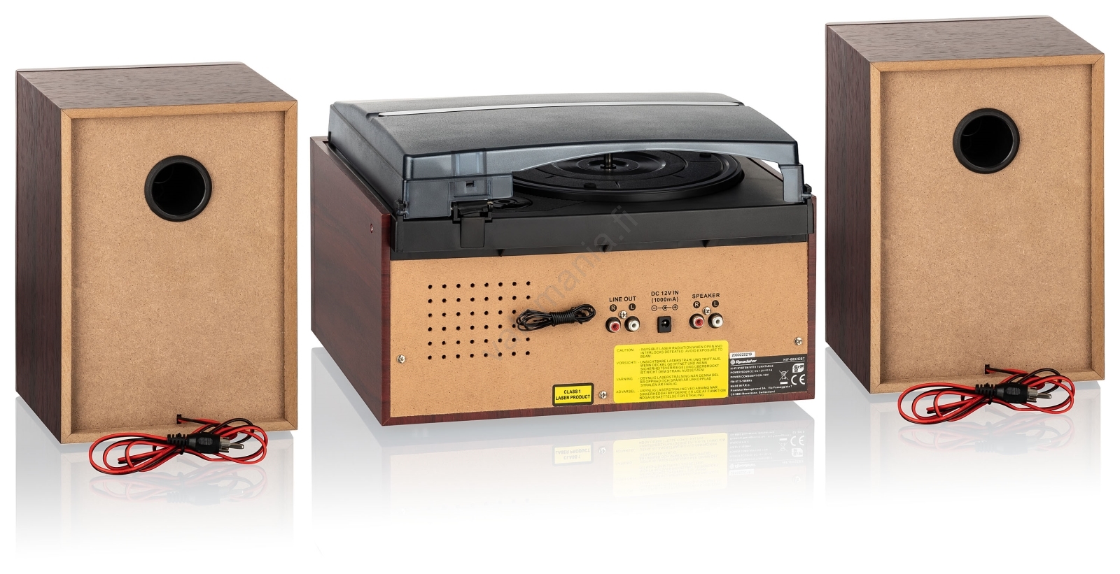 • Laadukas levysoitin nopeuksilla 33, 45 ja 78 kierrosta/min, automaattinen pysäytys ja automaattinen palautus.