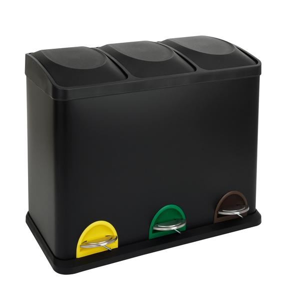 • Kolme erillistä sisäastiaa (jokainen tilavuudeltaan 15 l) mahdollistavat vaivattoman jätteiden lajittelun – esimerkiksi muovi, paperi ja biojäte.