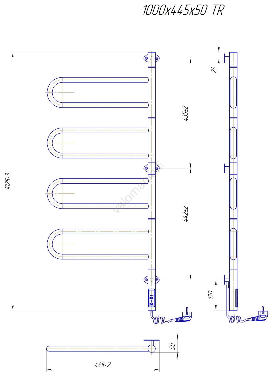 Sähköinen kääntyvä pyyhekuivain TRISTAR 105W/230V 100x44,5cm IP44 ruostumaton teräs/kiiltävä kromi