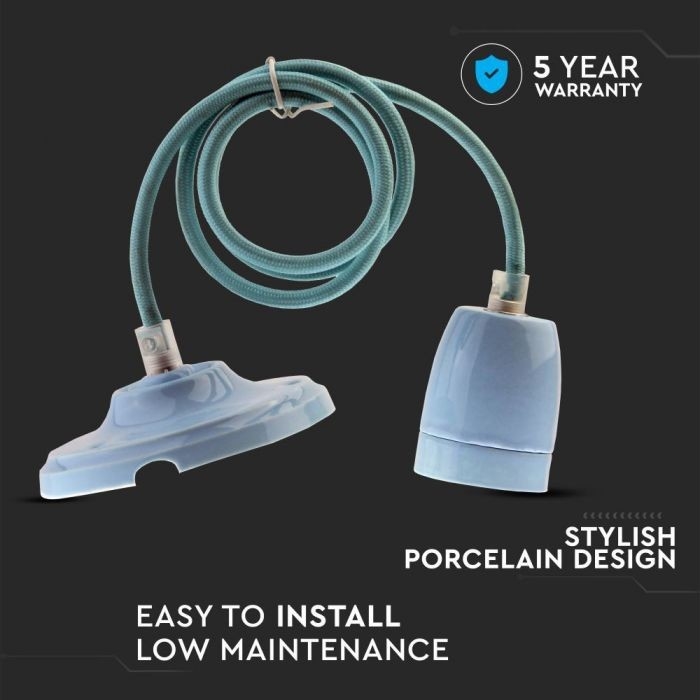 Sähköjohto 1xE27/60W/230V sininen/posliini | Valomania