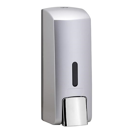 • Moderni saippua-annostelija tyylikkäässä harmaan sävyssä.