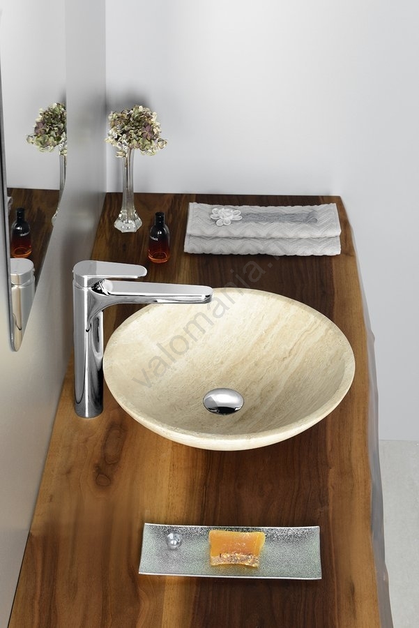 • Sapho - BLOK-tasoon asennettava pesuallas Ø 40 cm beige/travertiini