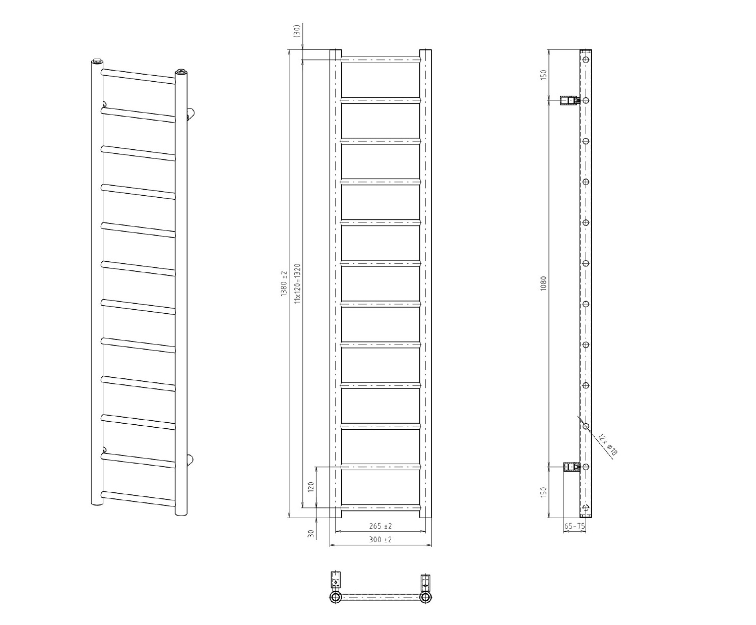 Sapho - DINA kylpyhuoneen pyyhekuivain 278W 30x138 cm valkoinen