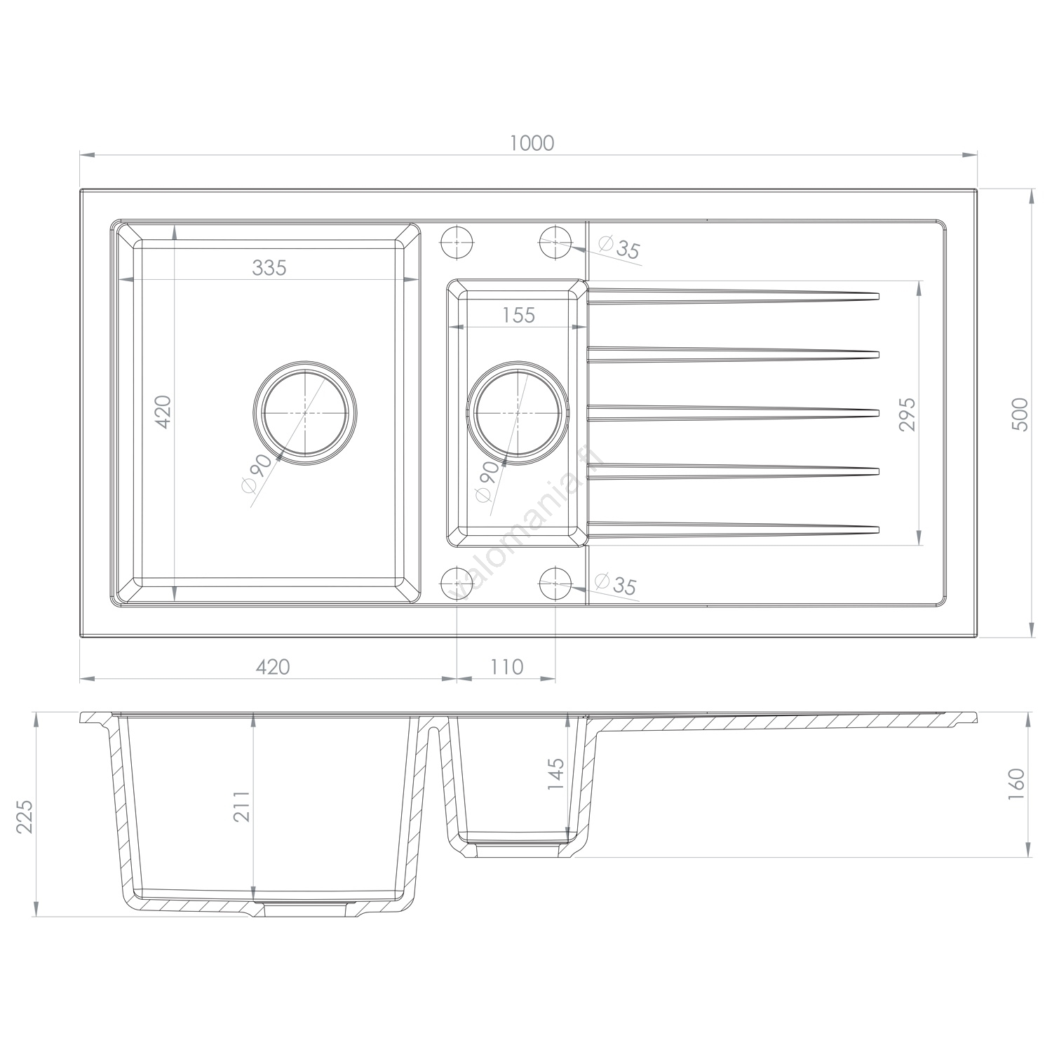 • Sapho - Keittiöallas 100 x 50 cm, graniitti/musta