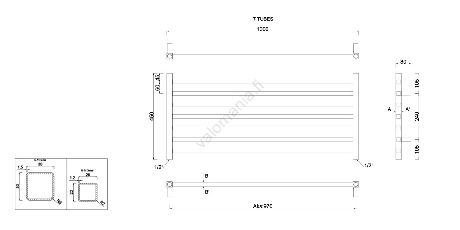 Sapho - Kylpyhuoneen pyyhekuivain METRO 295W/230V 100x45 cm kiiltävä kromi | Valomania