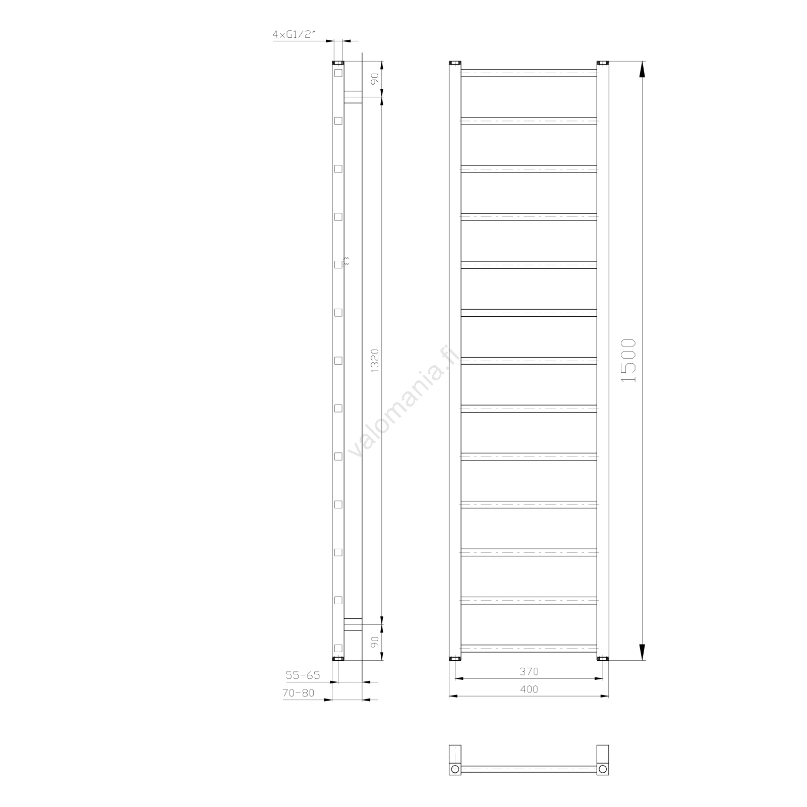 Sapho - Kylpyhuoneen radiaattori METRO LIGHT 150x40 cm, valkoinen | Valomania