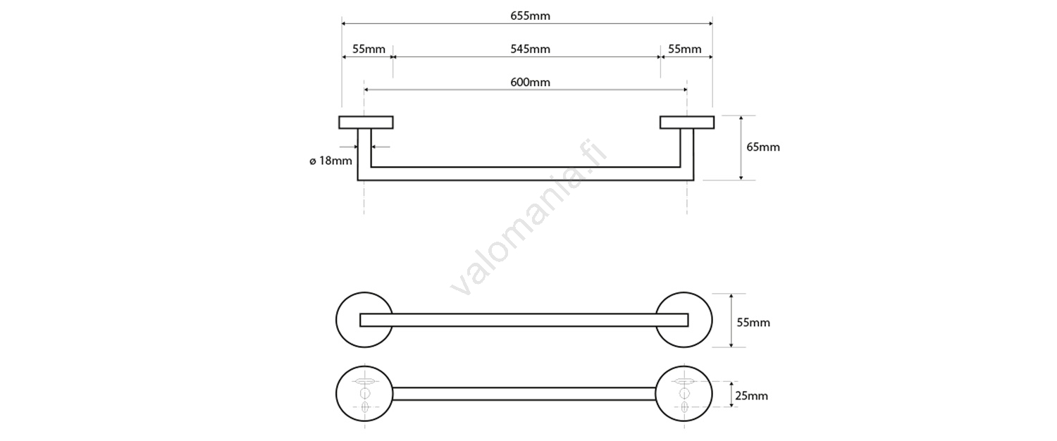 Sapho - Seinään asennettava pyyhetanko X-ROUND 6,5x65,5 cm kiiltävä kromi | Valomania