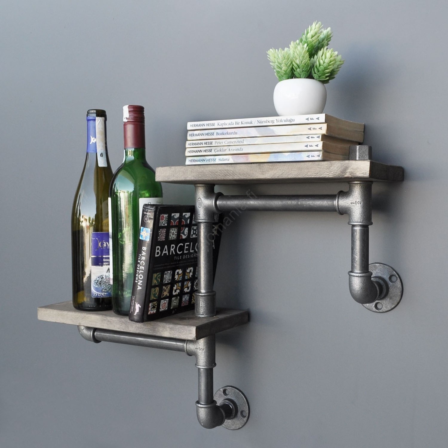 • Seinä hylly mäntypuusta teollisessa tyylissä.