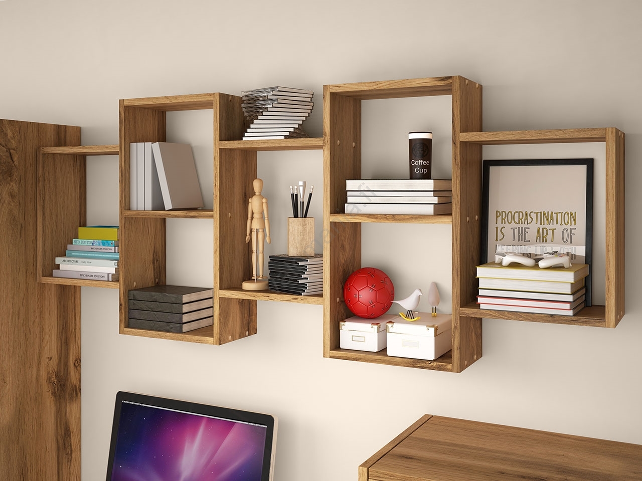 • Seinä hylly kirjojen, koristeiden ja monien muiden esineiden esittelyyn.