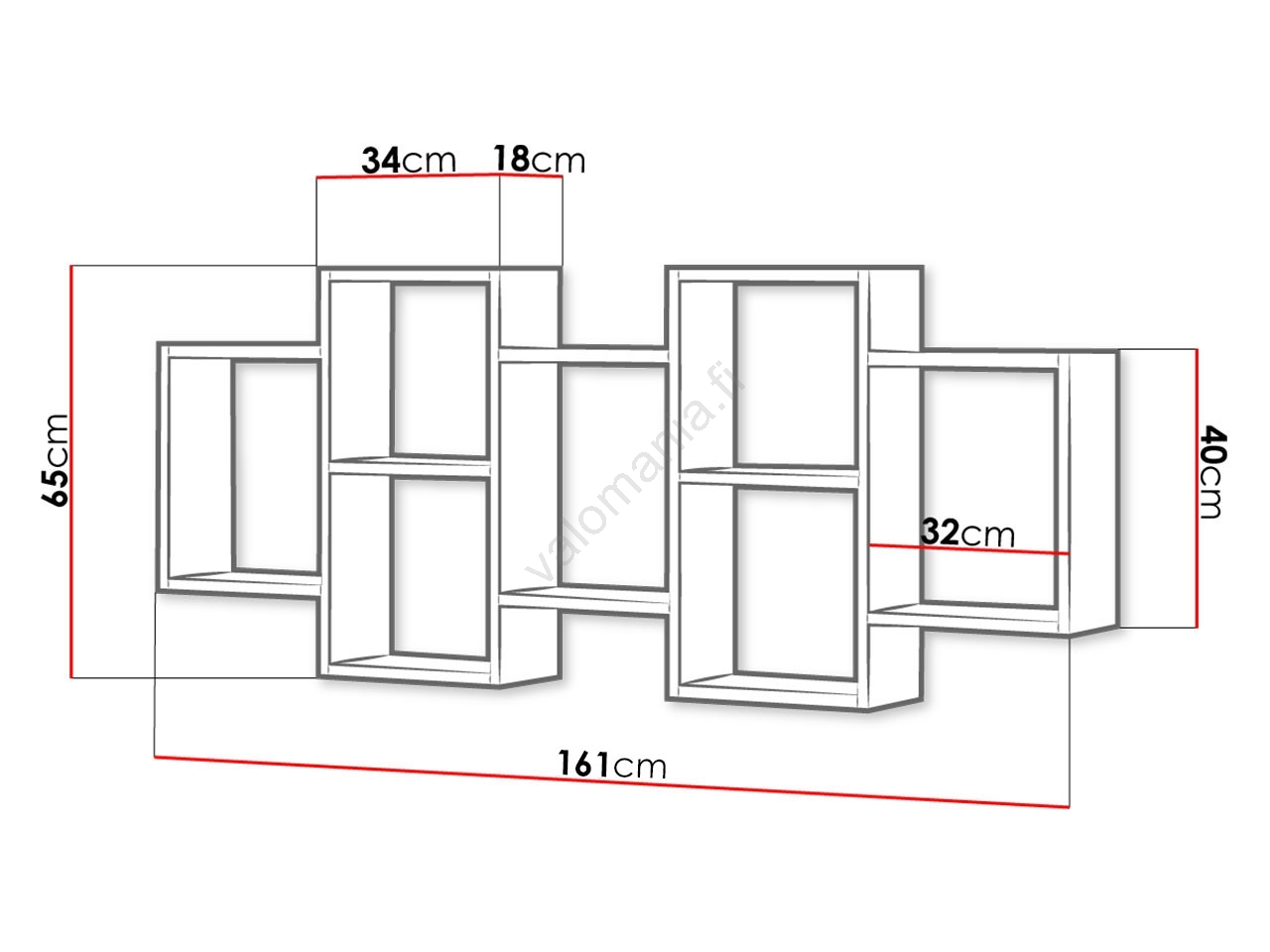 • Seinä hylly kirjojen, koristeiden ja monien muiden esineiden esittelyyn.