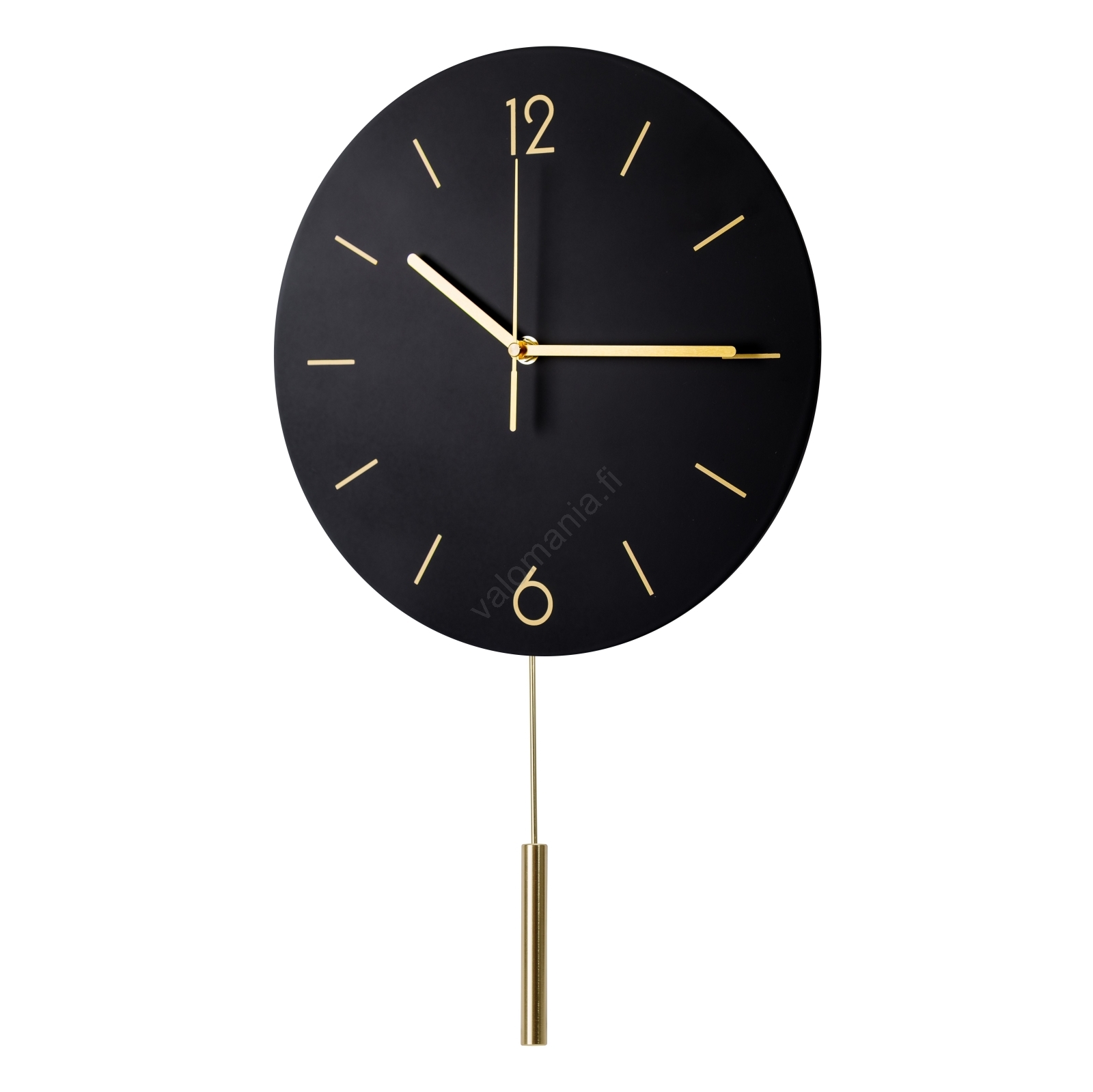 Seinäkello heilurilla pr. 30 cm 1xAA musta/kulta | Valomania