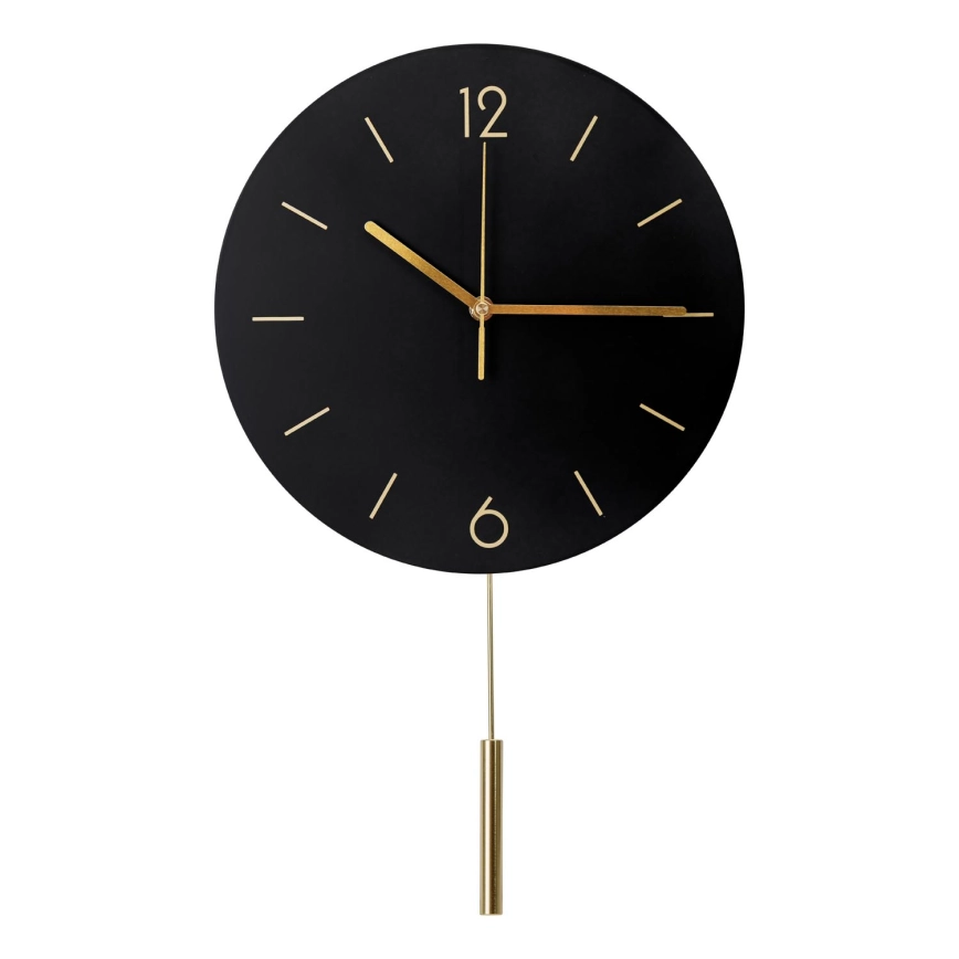 Seinäkello heilurilla Ø 30 cm 1xAA musta/kulta