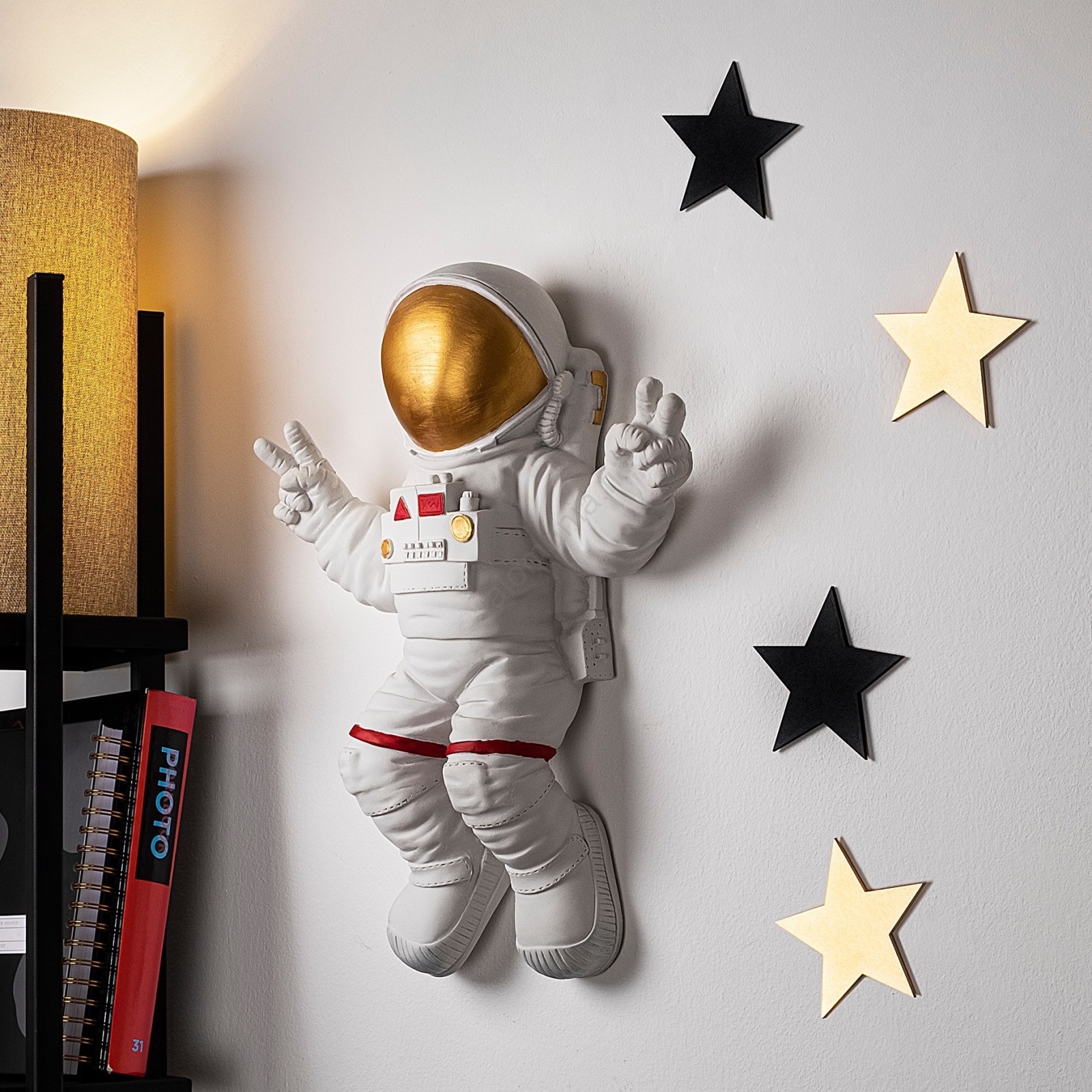 • Lapsille tarkoitettu seinälle ripustettava koriste – astronautti.