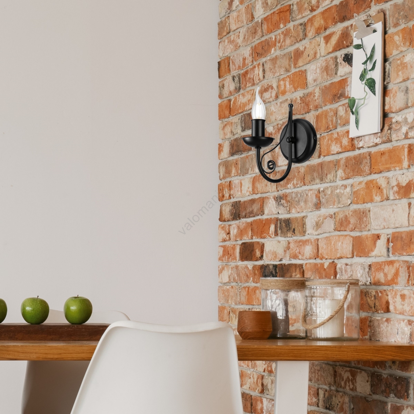 Seinävalaisin DONATO 1xE14/40W/230V musta merkitsee kaunista ja toimivaa muotoilua.  Valoon sopii polttimo, jossa on E14-kanta. Täältä voit ostaa myös muita lamppuja edulliseen hintaan. Mielenkiintoinen lisä kotiisi.